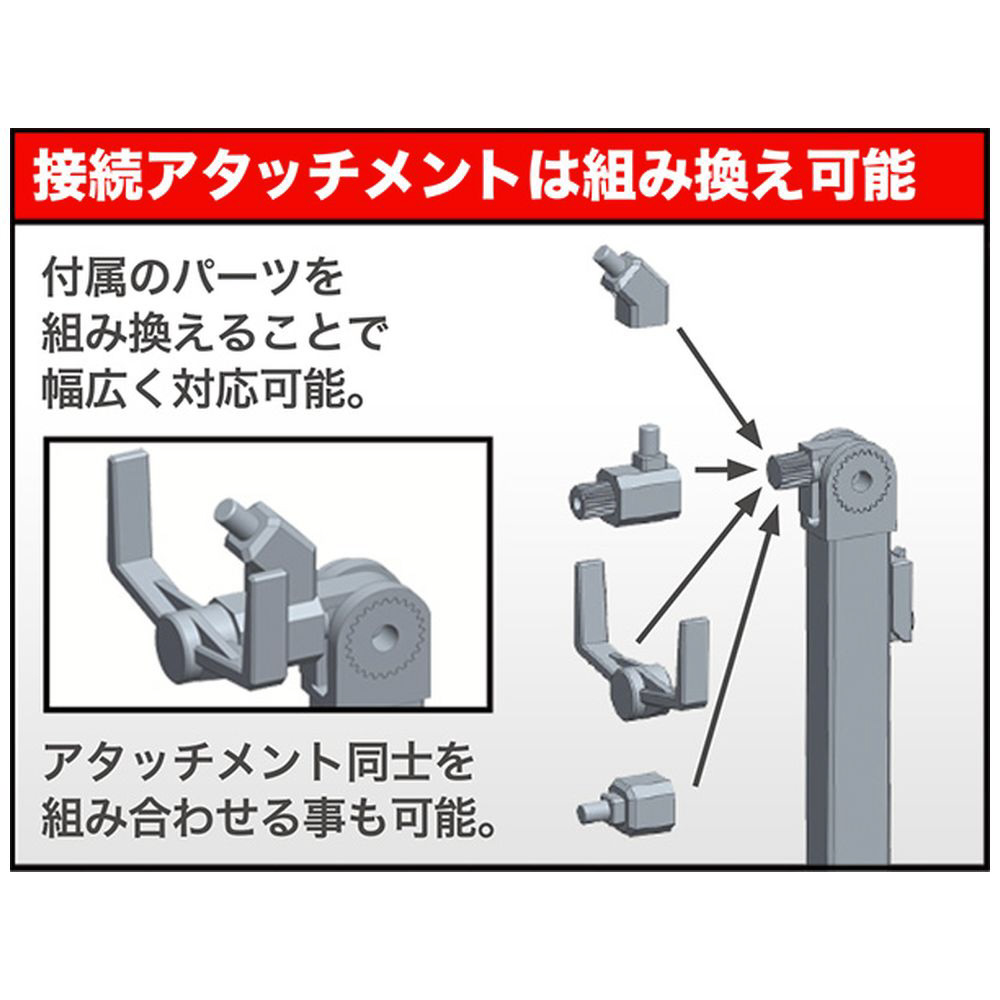 接続アタッチメントは3mm径接続で、複数のジョイントが付属、角度選択式のツメを使うことで、より安定した保持を可能にいたします。