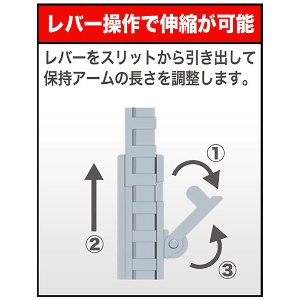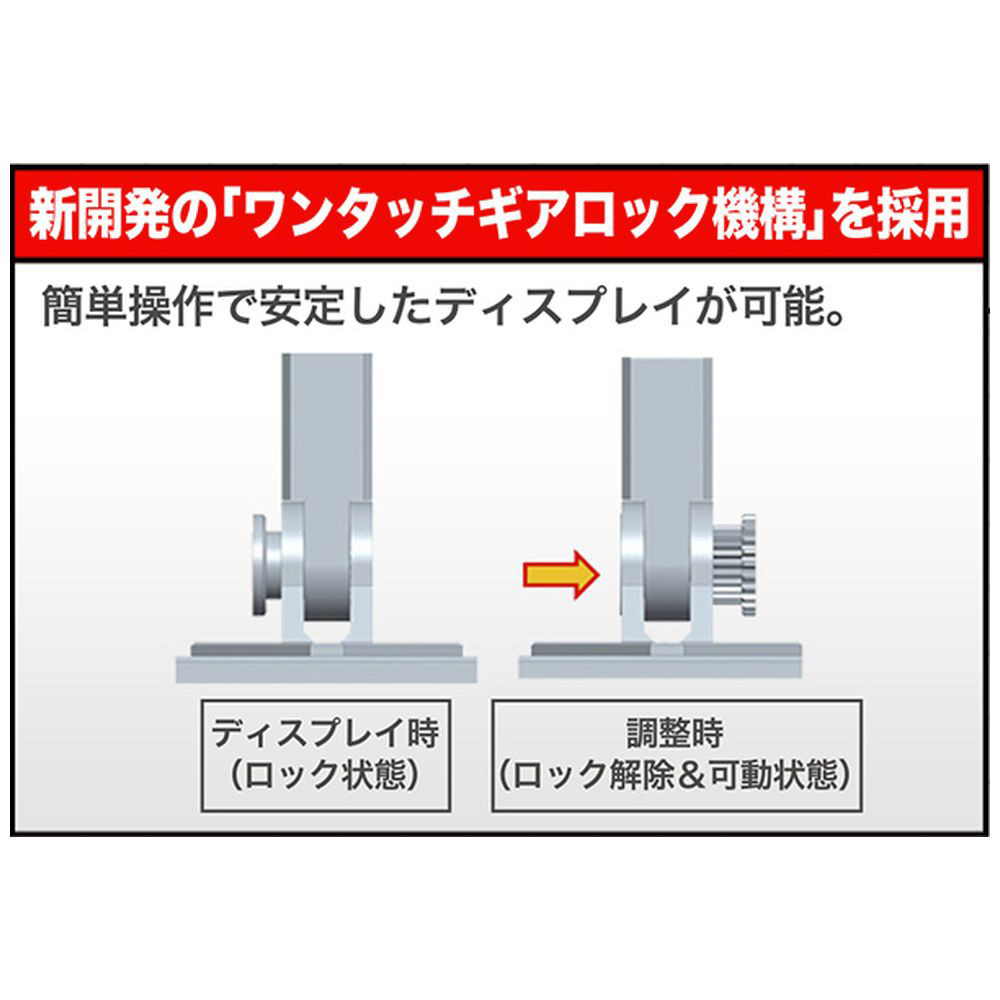ワンタッチロックギア機構を使用し、簡単操作&安定ディスプレイを実現!