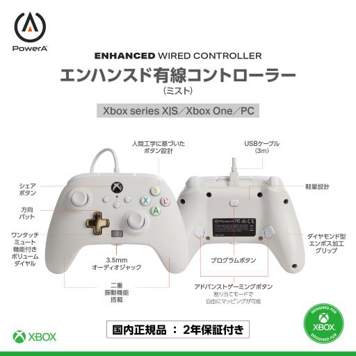 【国内正規品】PowerA エンハンスド有線コントローラー Xbox Series XS ミスト