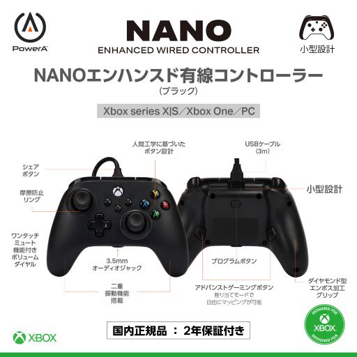 【国内正規品】PowerA Nano エンハンスド有線コントローラー Xbox Series XS ブラック