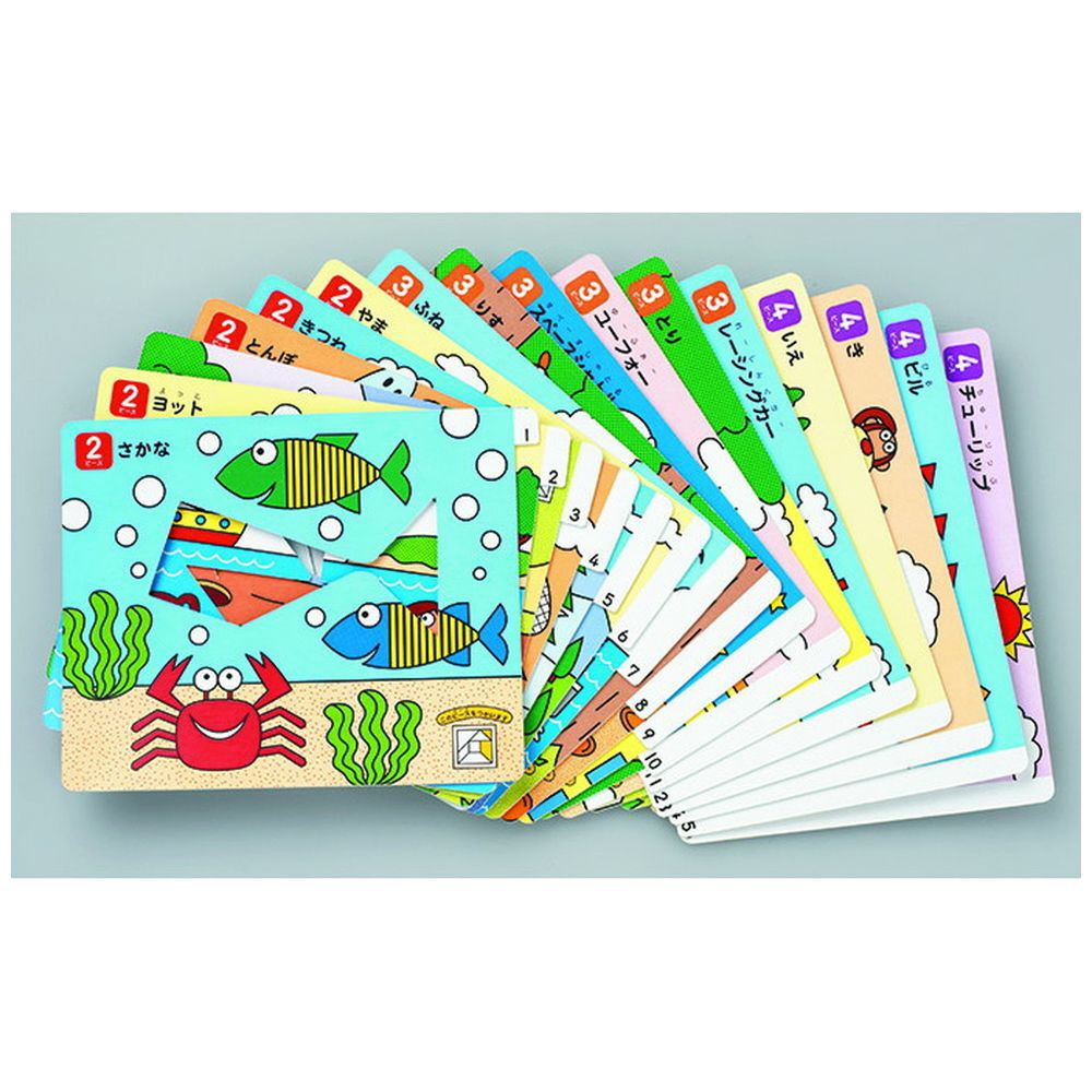 形・大きさがバラバラの7種類のピースを使って、指定の形を作るパズルです。