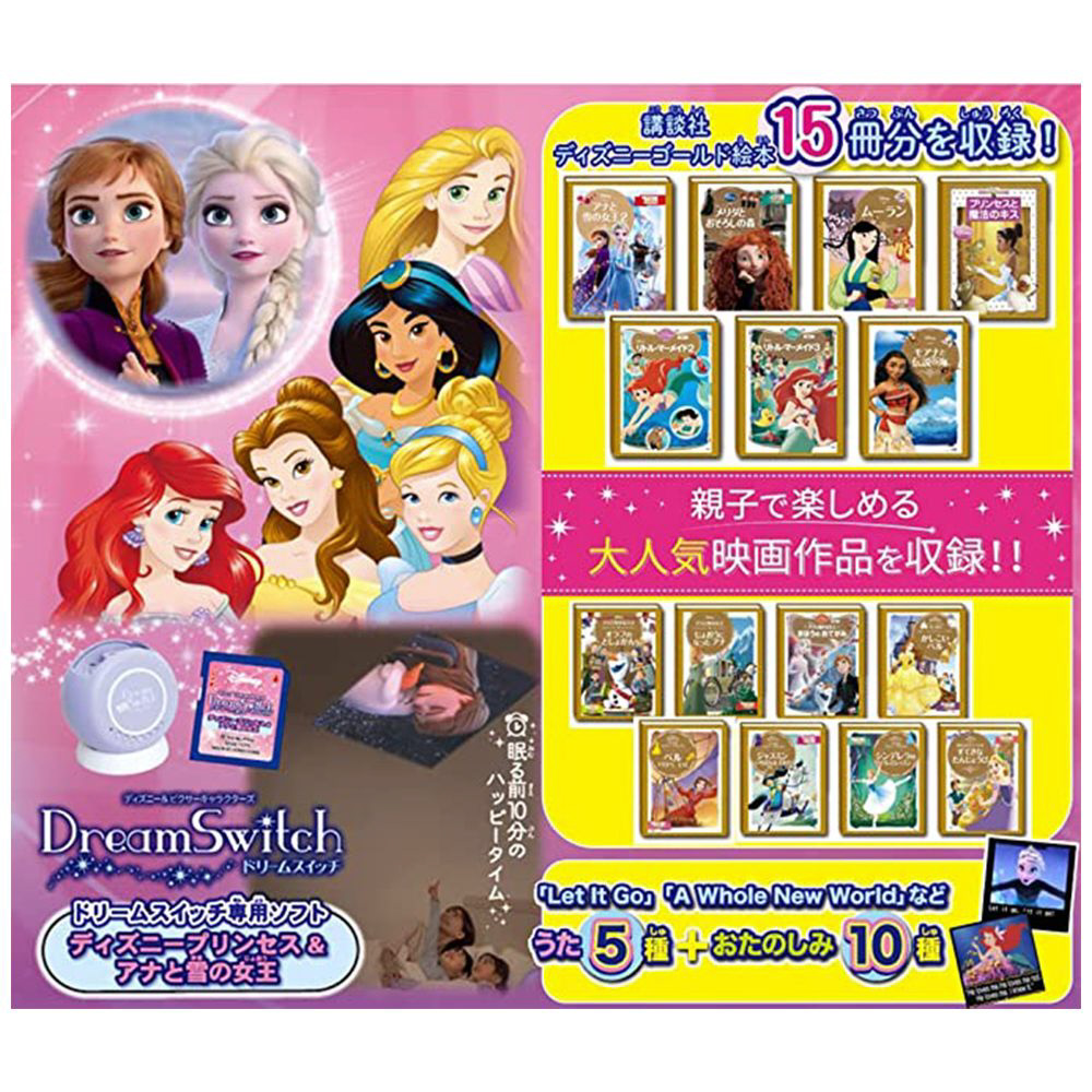『アナと雪の女王』『リトル・マーメイド2』など、ディズニープリンセスのおはなしを全15話収録したドリームスイッチ専用ソフトです。