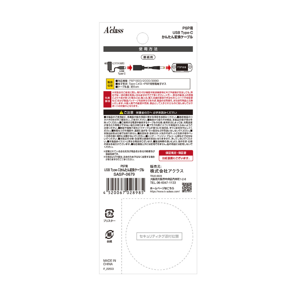 PSP用USB Type-Cかんたん変換ケーブル