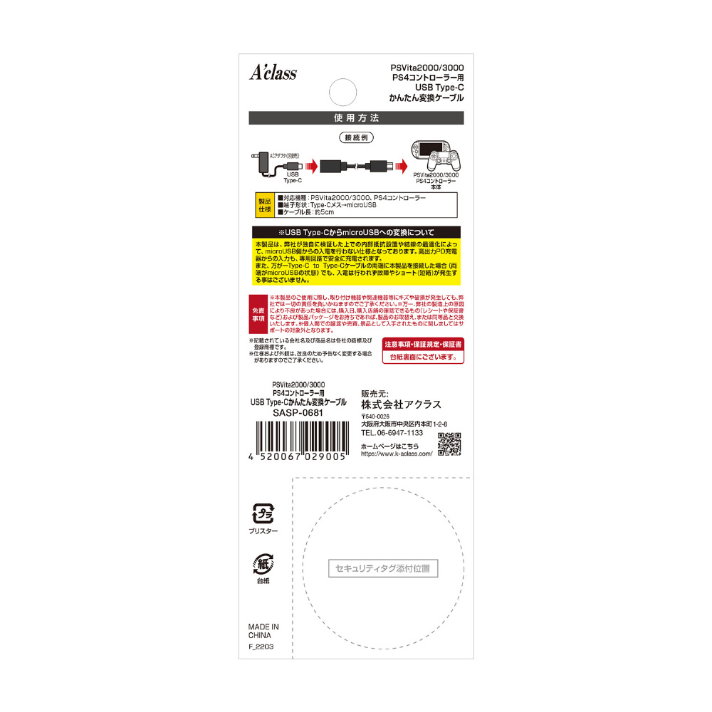 | 商品名 | PSV2000・3000用USB Type-Cかんたん変換ケーブル |