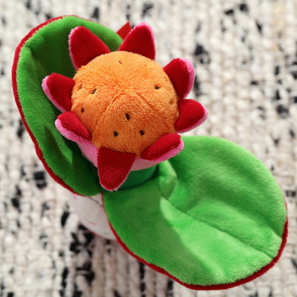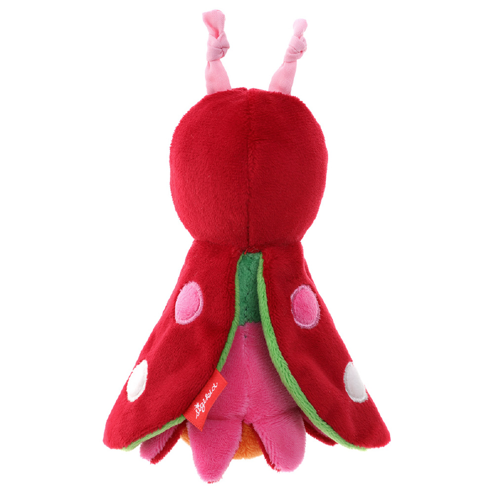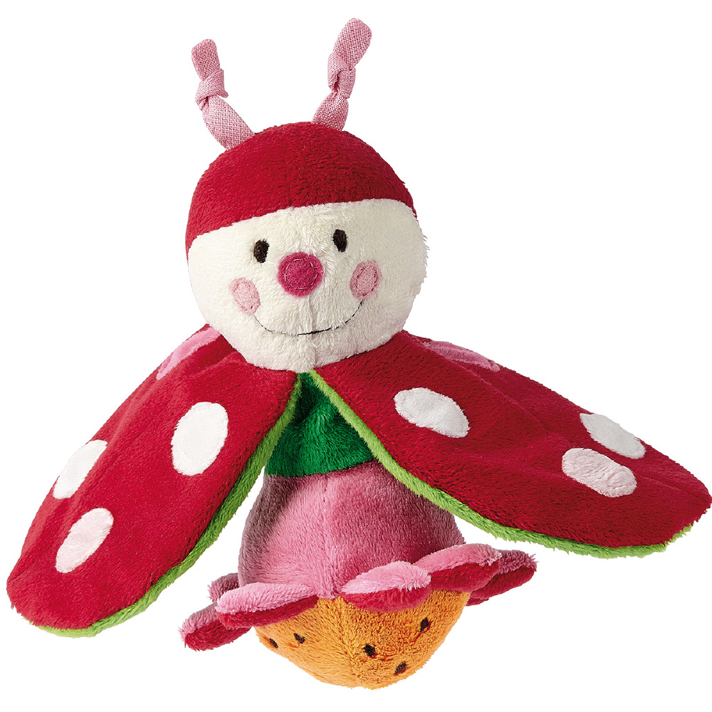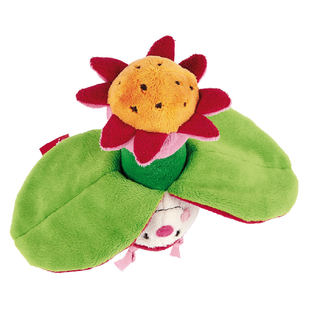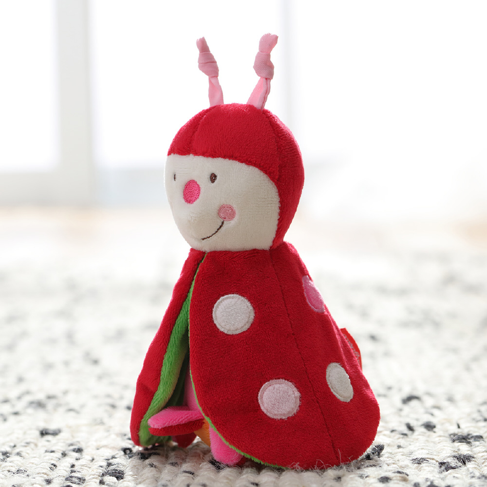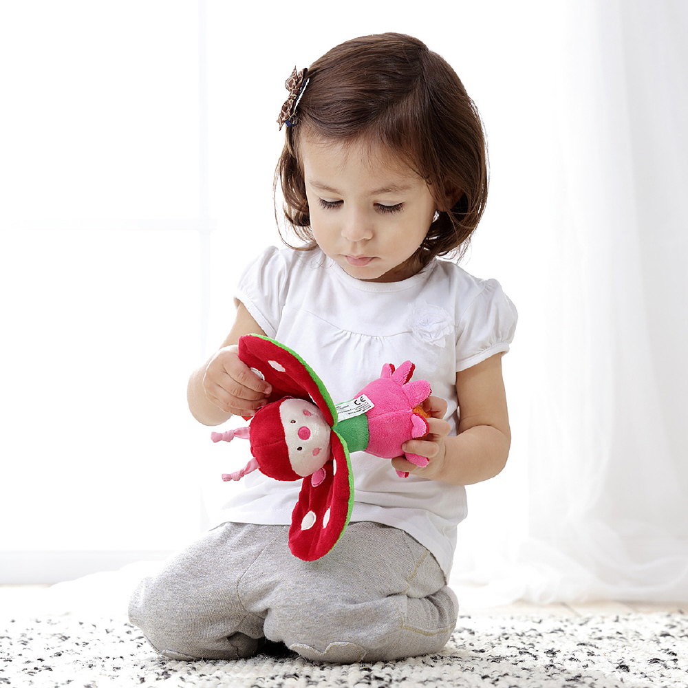 てんとう虫の羽の部分は赤ちゃんの大好きなパリパリとなる仕掛けが。なんとひっくり返すとお花に変身!赤ちゃんの目の前でいないいないばぁを繰り返して一緒にあそんでみましょう。布製遊具特有のあたたかく優しい肌触りや、自分やお母さんのにおいがつきやすい点などは、赤ちゃんに安心感をもたらします。
