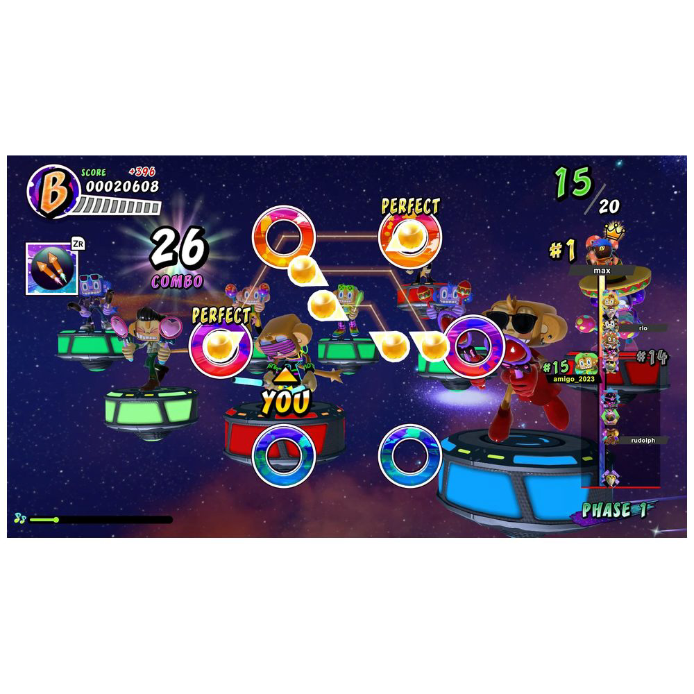 世界中のプレイヤーバトルロワイヤル式でスコアを競う「ワールドパーティ」モード、