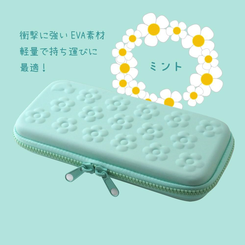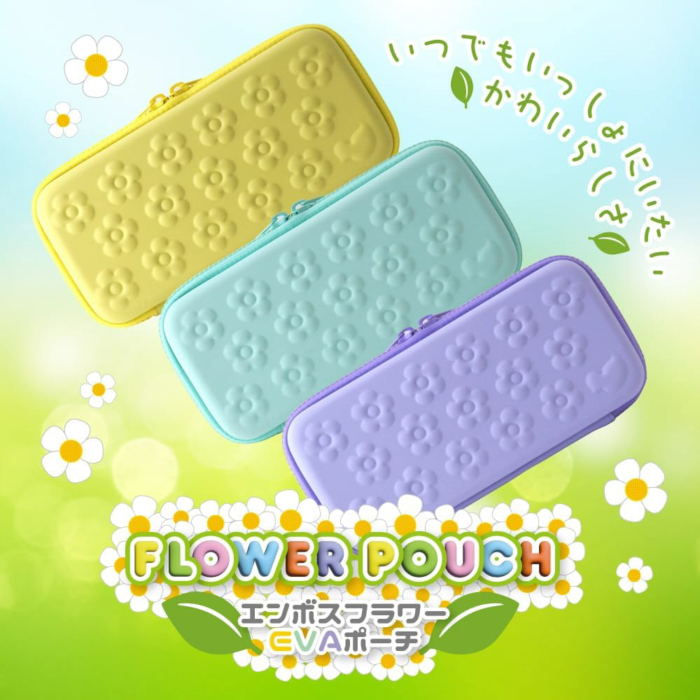 大きめ花柄エンボスが可愛い♪Switch 用エンボスEVA カラーポーチ