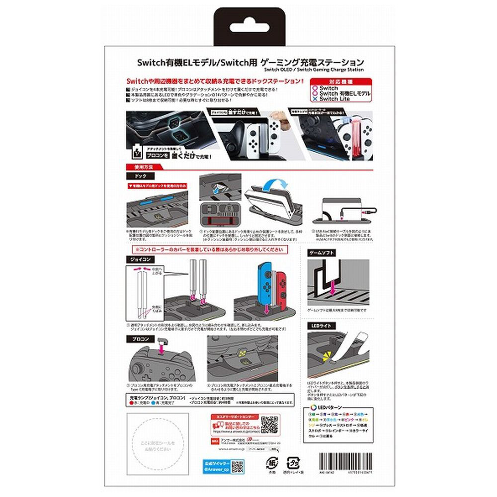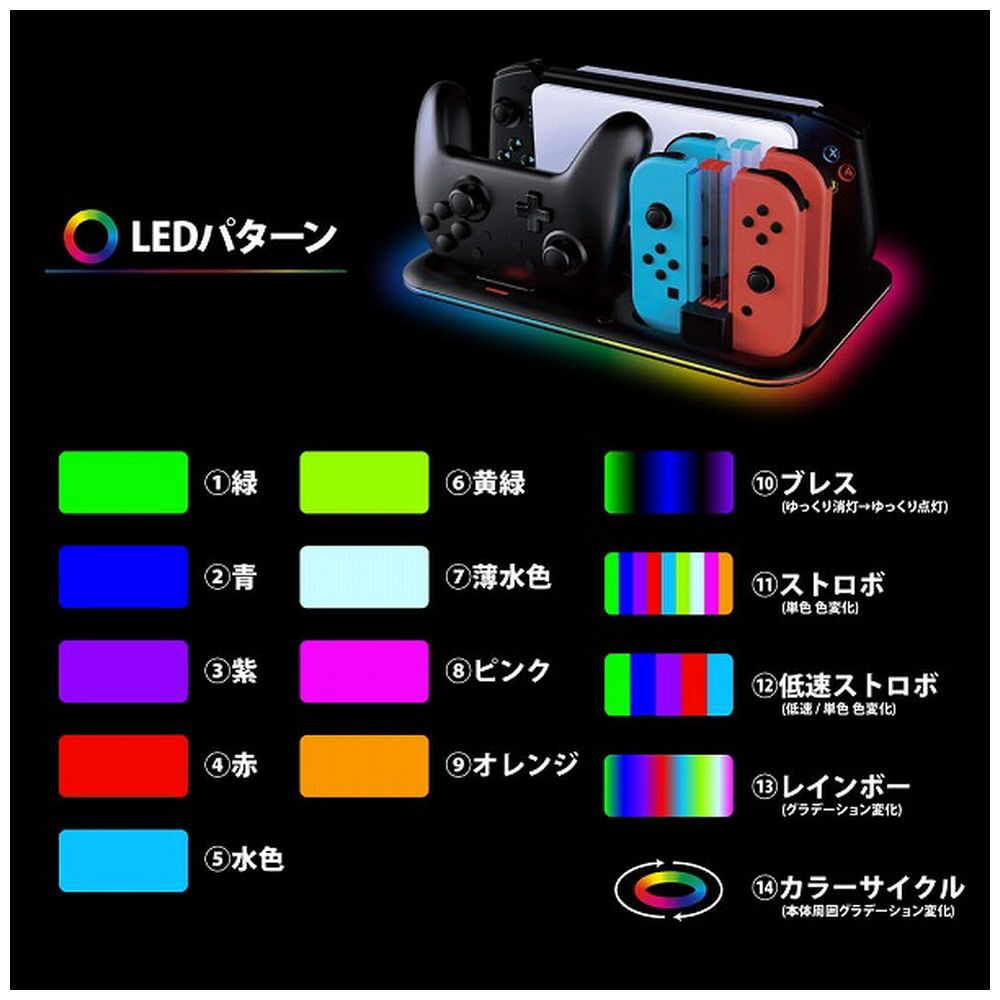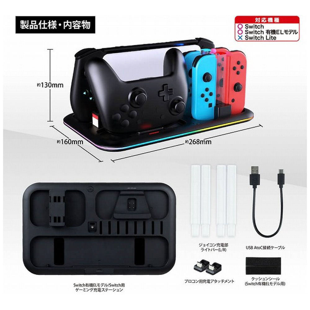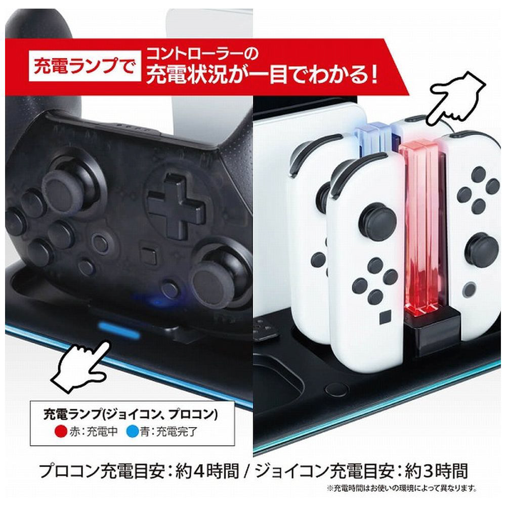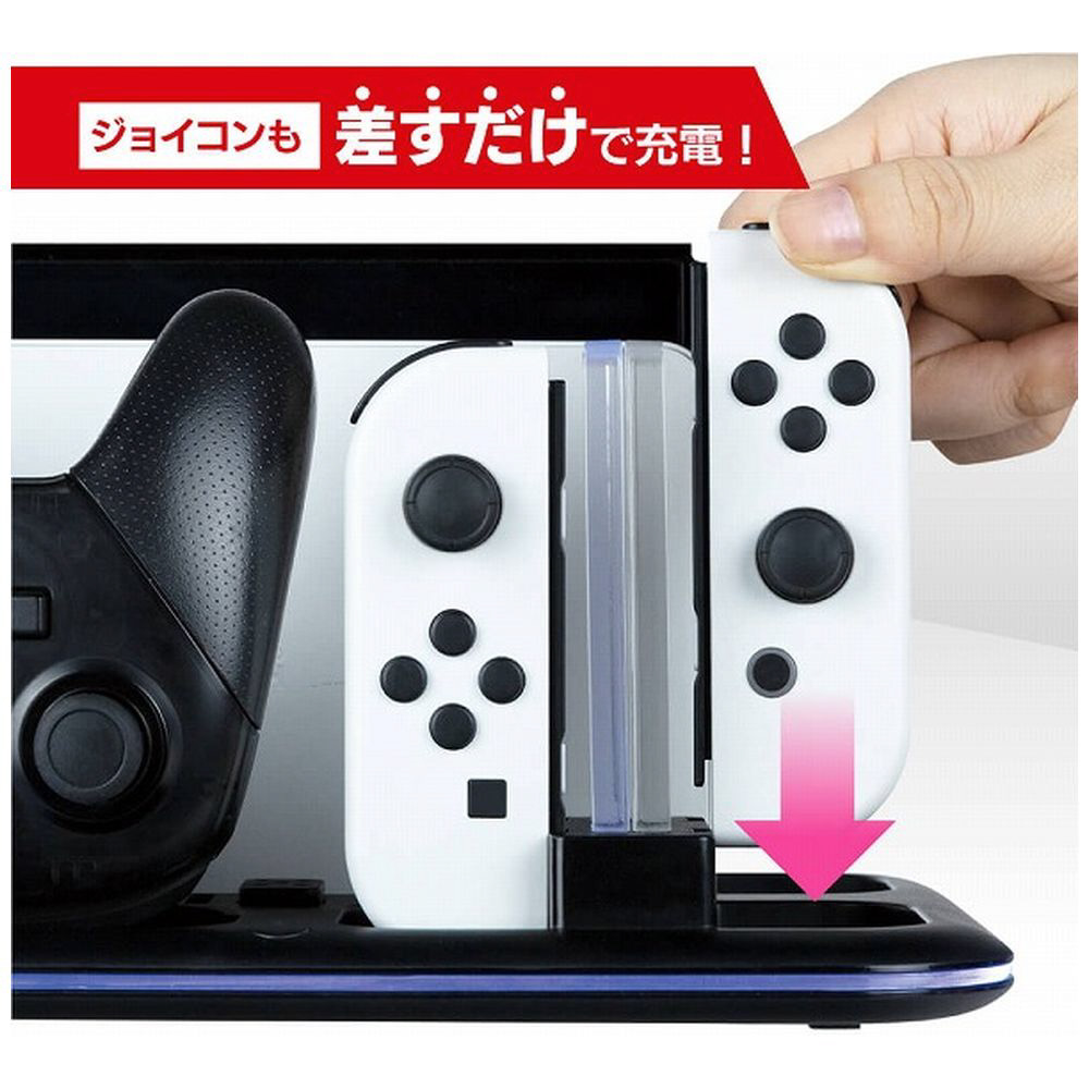 Switch有機ELモデル/Switchのドックステーション!ジョイコン4本・プロコン1個を充電可能・Switchソフトも8枚収納可能!