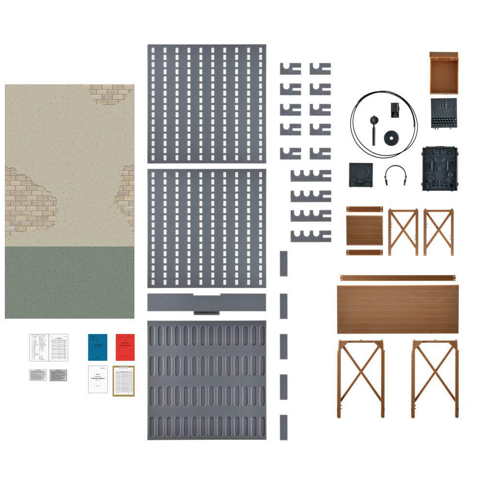 ベースとなる床と壁に、木製机や椅子、当時の無線機、暗号機、モールス信号用キーなどの小物を合わせてセット化しました。