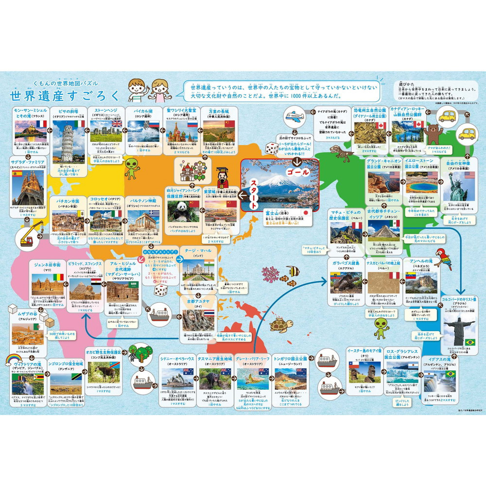 遊びながら、楽しく世界地図が覚えられます。