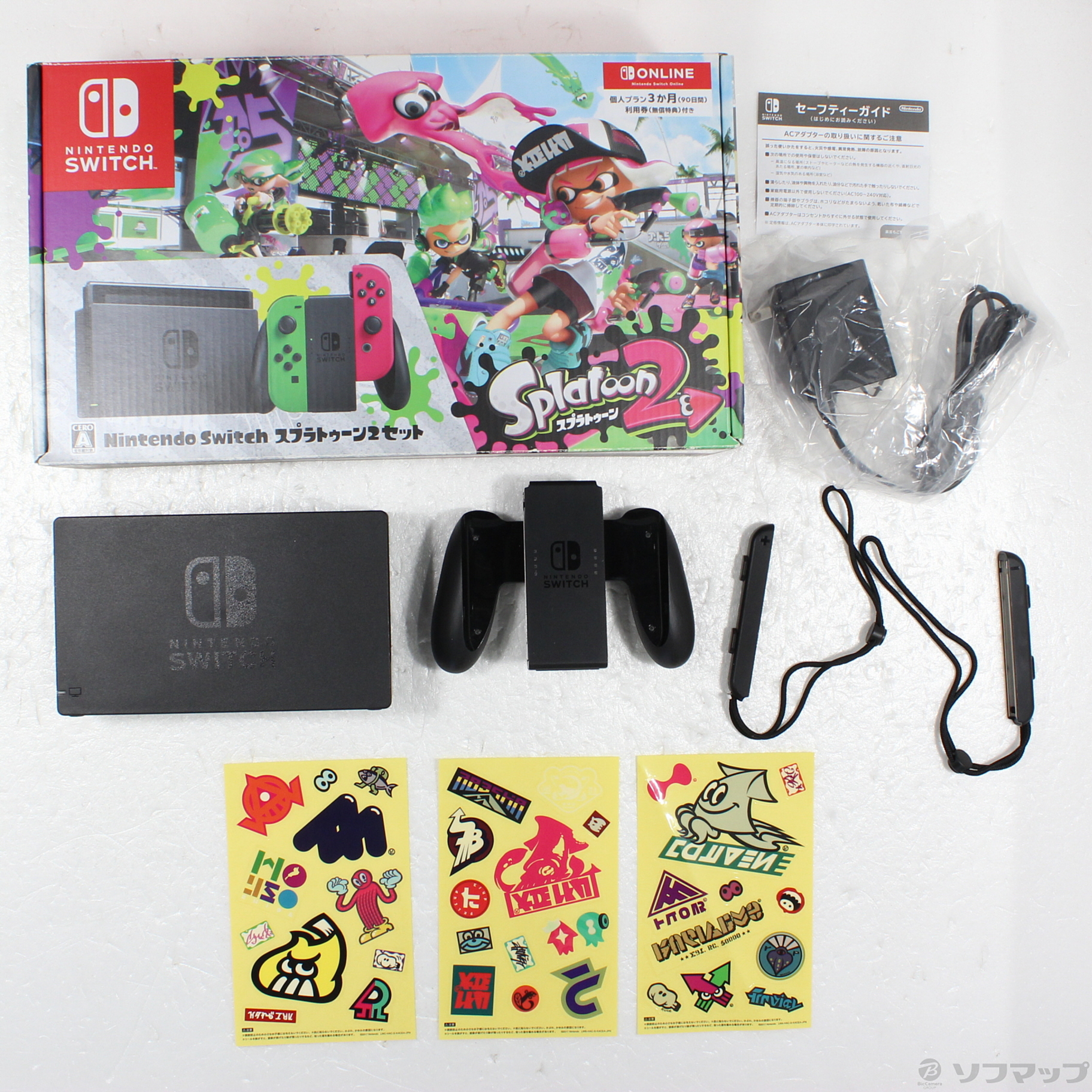 中古商品ランクについて 付属品・商品状態について 〔付属品〕箱/内箱、セーフティガイド、ACアダプター、Joy-Conグリップ、Nintendo Swithドック、Joy-Conストラップ×2、オリジナルステッカー×3、背面スタンド