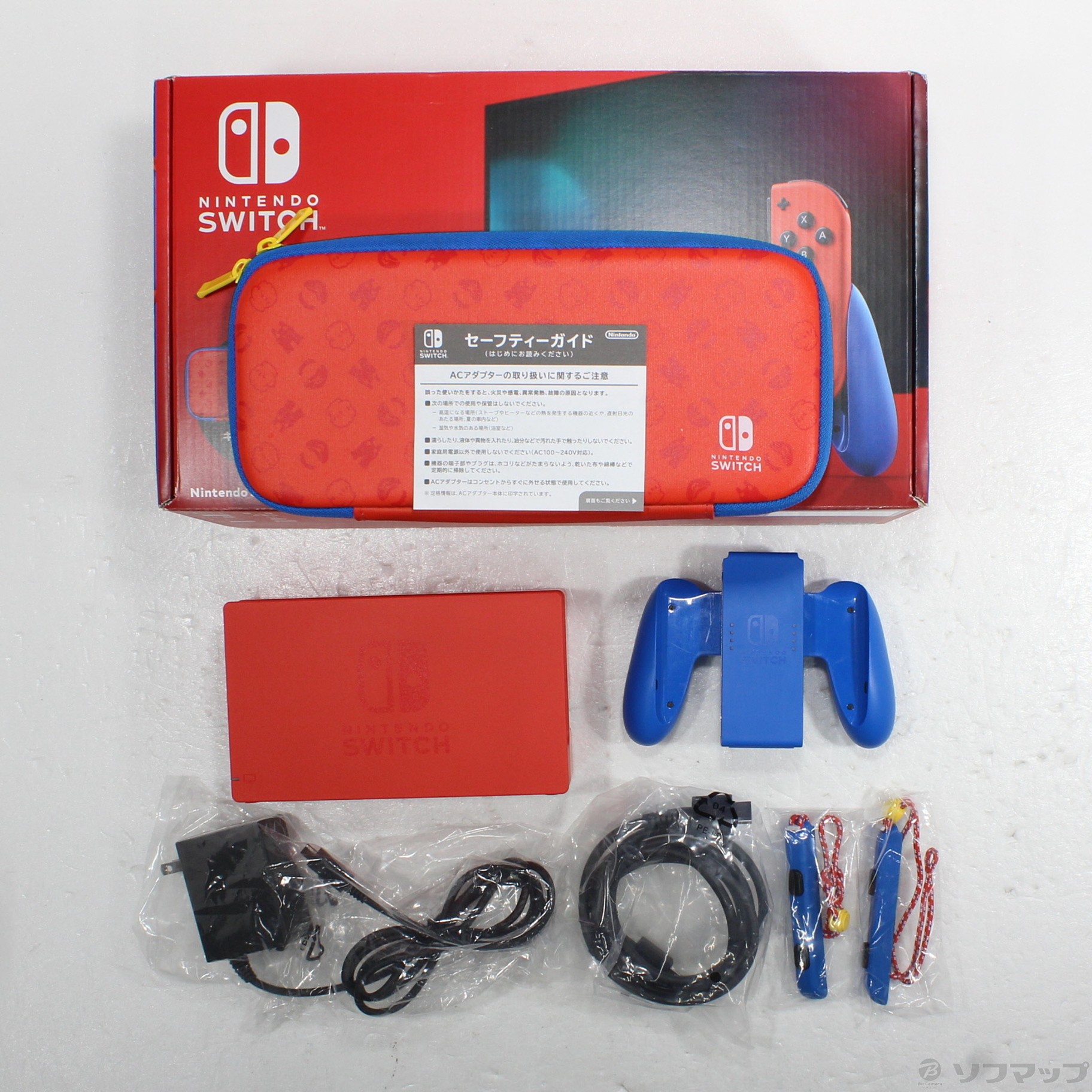 中古商品ランクについて 付属品・商品状態について 〔付属品〕箱、セーフティガイド、ACアダプター、Joy-Con(R)、Joy-Con(L)、Joy-Conグリップ、Nintendo Switchドック、Joy-Conストラップ(1/2)、Joy-Conストラップ(2/2)、Nintendo Switchキャリングケース、背面スタンド、HDMIケーブル