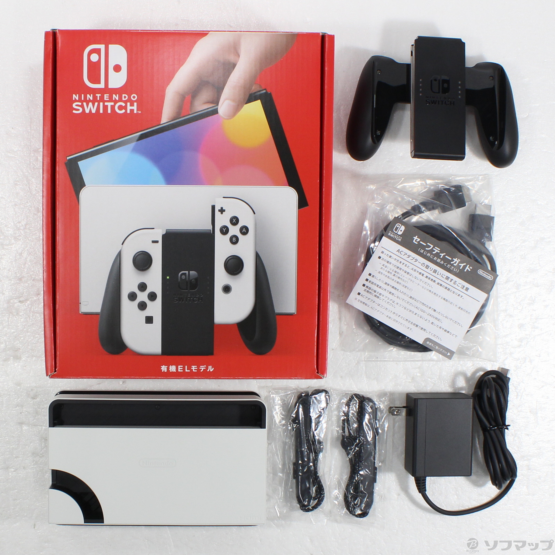〔付属品〕箱/内箱、セーフティーガイド、ACアダプター、Joy-Conグリップ、Nintendo Switchドック ホワイト、Nintendo Switchドック背面カバー ホワイト、Joy-Conストラップ(1/2)、Joy-Conストラップ(2/2)、ハイスピード HDMIケーブル