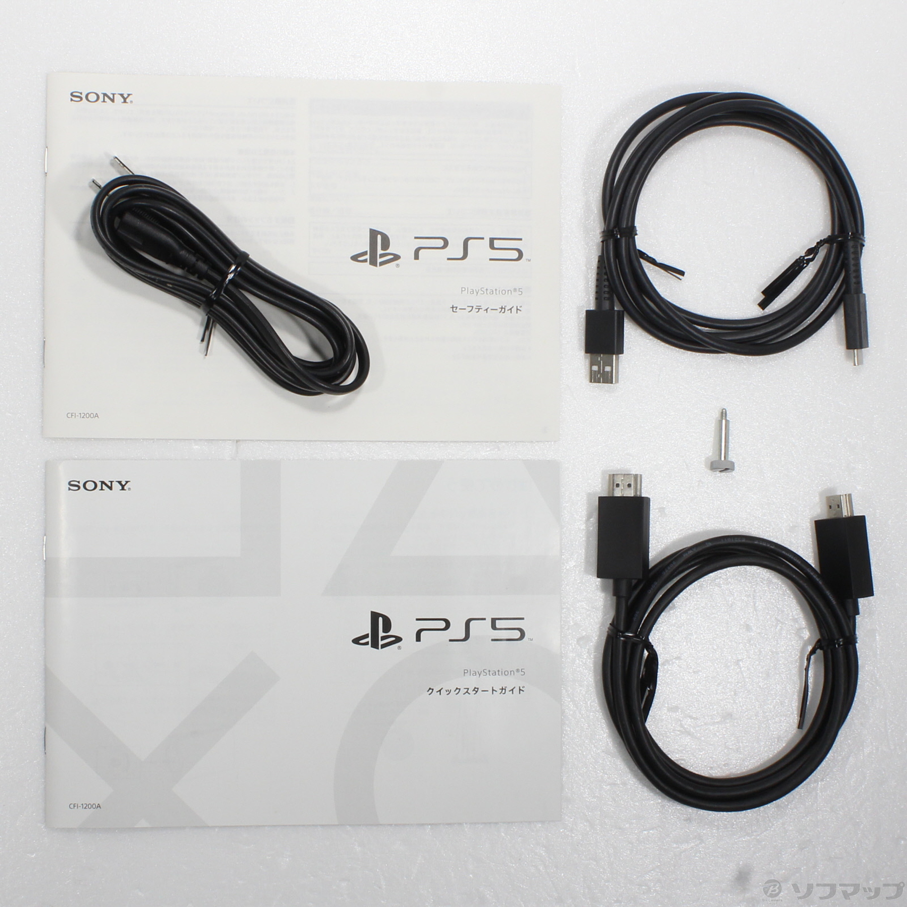 〔付属品〕クイックスタートガイド、セーフティガイド、DualSense ワイヤレスコントローラー、ベース、ベース取付用ネジ、HDMIケーブル、ACケーブル、非純正USBケーブル