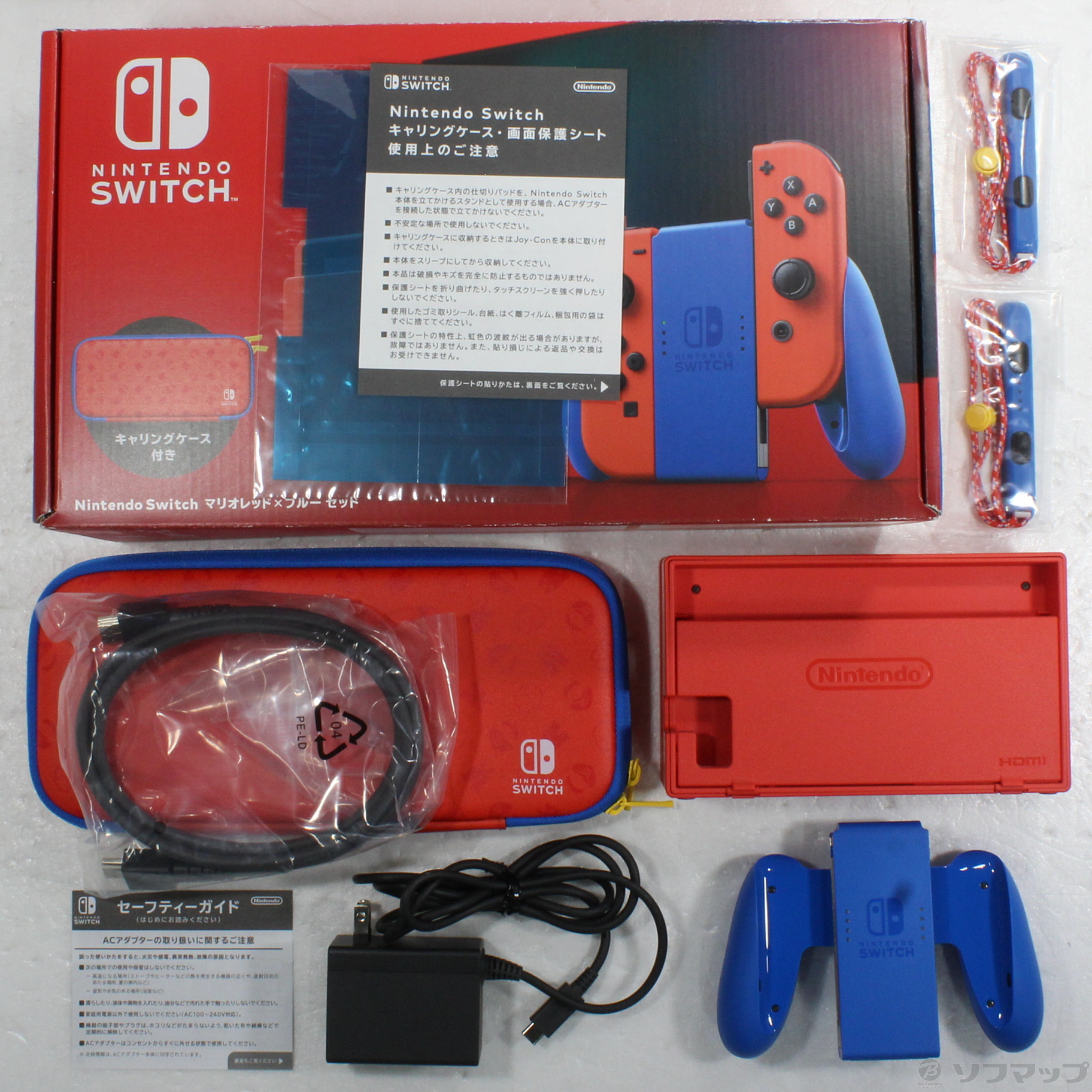 中古商品ランクについて 付属品・商品状態について 〔付属品〕箱、セーフティガイド、ACアダプター、Joy-Con(R)、Joy-Con(L)、Joy-Conグリップ、Nintendo Switchドック、Joy-Conストラップ(1/2)、Joy-Conストラップ(2/2)、Nintendo Switchキャリングケース、Nintendo Switch画面保護シート、背面スタンド、HDMIケーブル