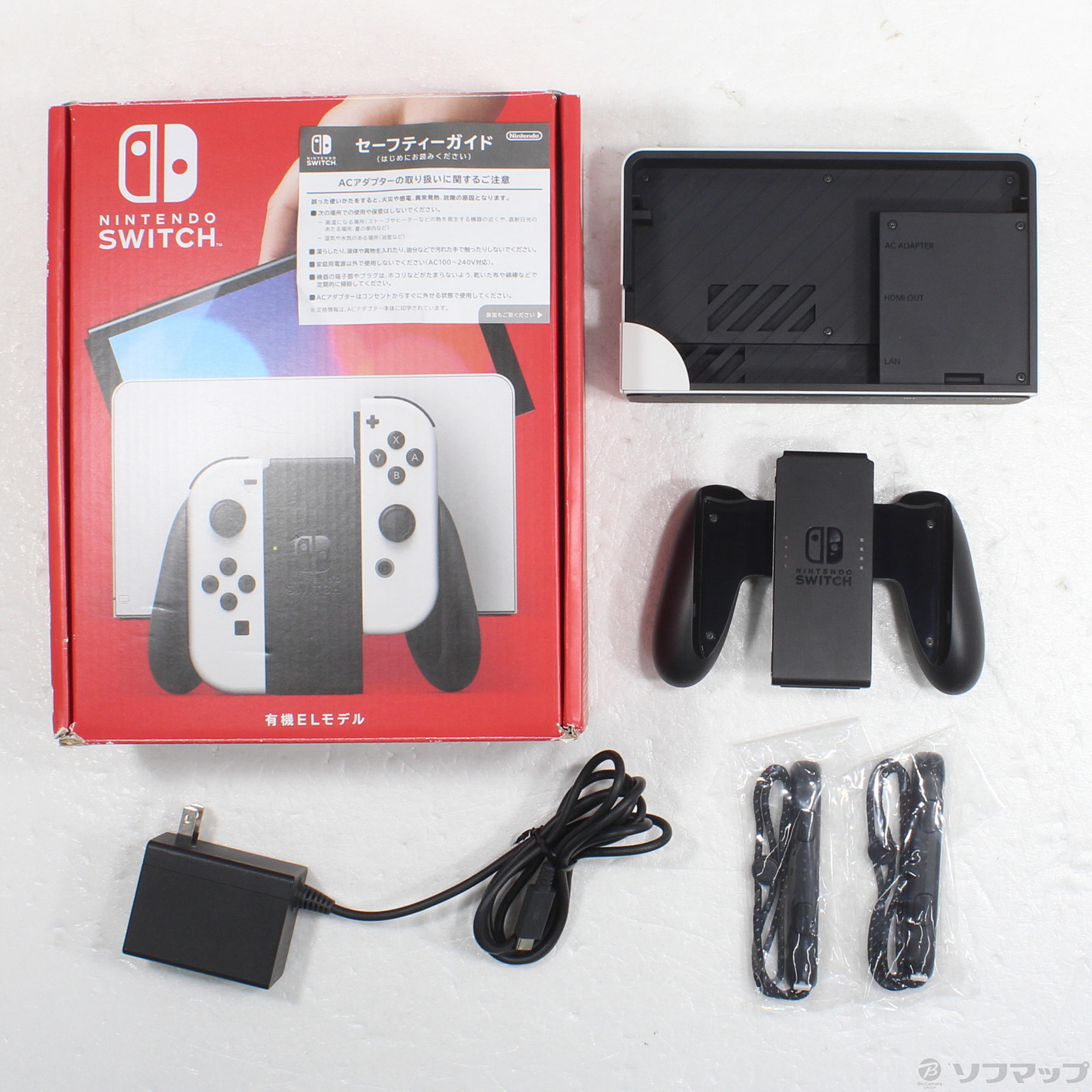 〔付属品〕箱/内箱、セーフティーガイド、ACアダプター、Joy-Conグリップ、Nintendo Switchドック ホワイト、Joy-Conストラップ(1/2)、Joy-Conストラップ(2/2)