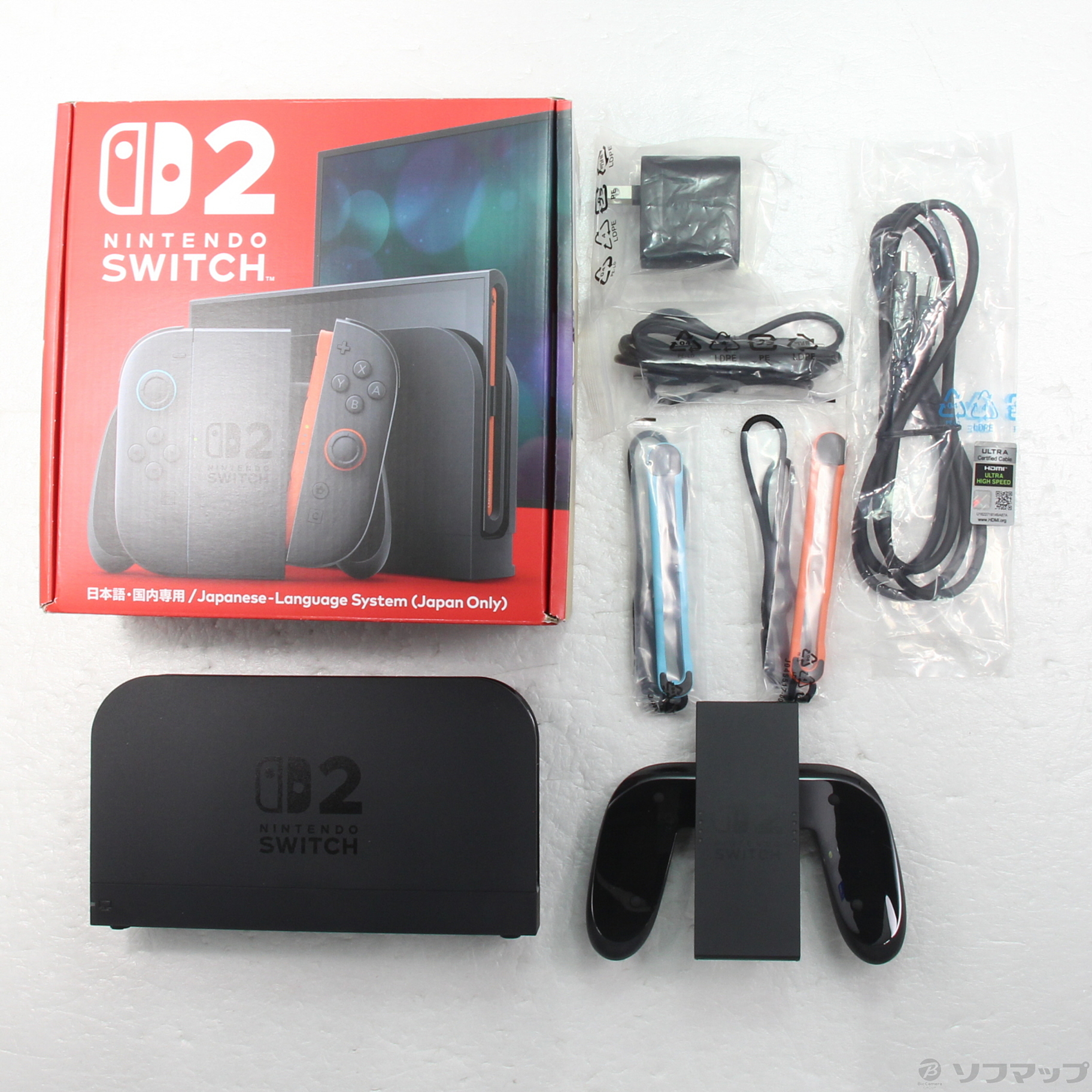 〔付属品〕外箱/内箱、Nintendo Switch 2 ACアダプター、Joy-Con 2 (L) ライトブルー、Joy-Con 2 (R) ライトレッド、Nintendo Switch 2 ドック、Nintendo Switch 2 ドック カバー、Joy-Con 2 グリップ、Joy-Con 2 ストラップ ライトブルー、Joy-Con 2 ストラップ ライトレッド、USB-C充電ケーブル、ウルトラハイスピードHDMIケーブル