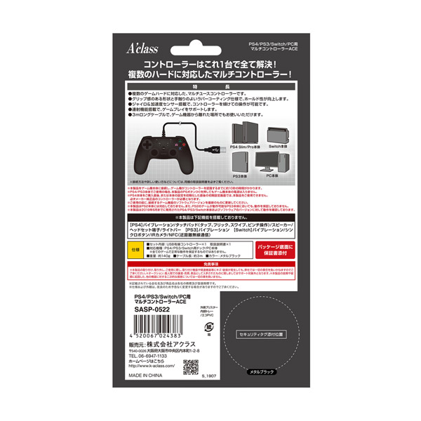 PS4/PS3/Switch/PC対応マルチコントローラーAce メタルブラック [SASP-0522] 【PS4/PS3/Switch/PC】