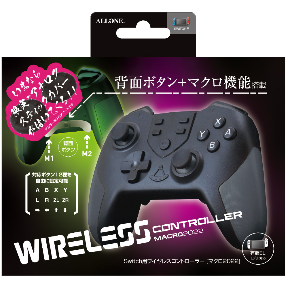 Switch用ワイヤレスコントローラー マクロ2022+アナログスティックカバーセット ALG-NSWCM22CP